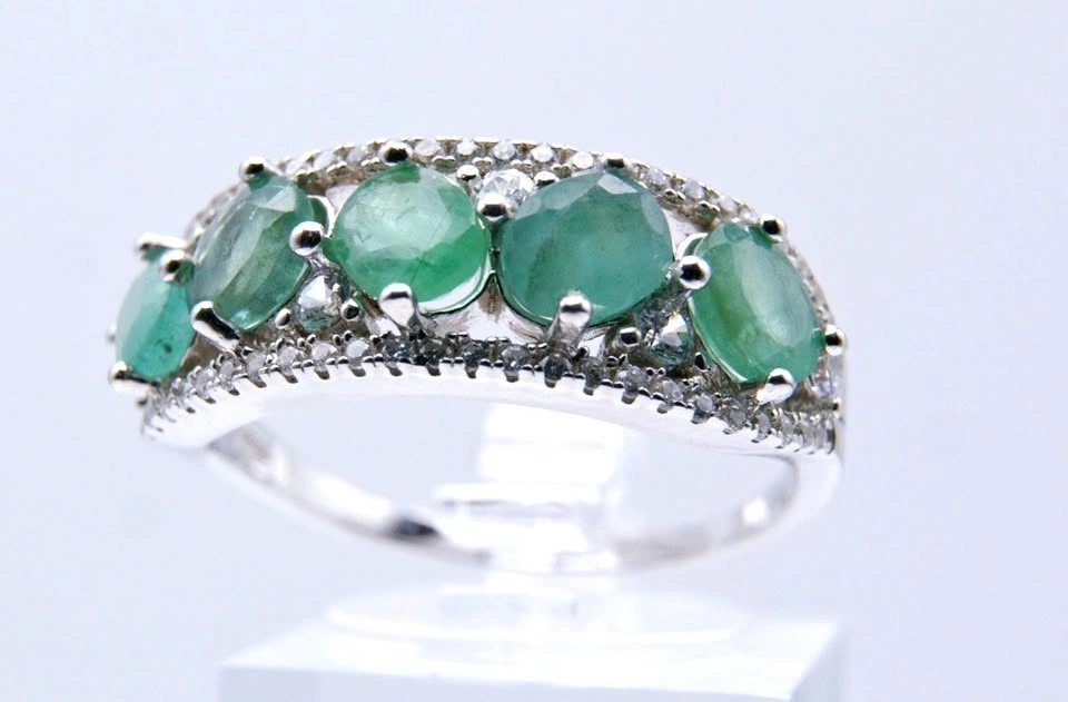 Oval Cut Brazilian Emeralds set in Sterling Silver plated in 14k White Gold.