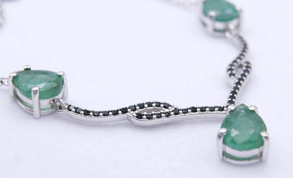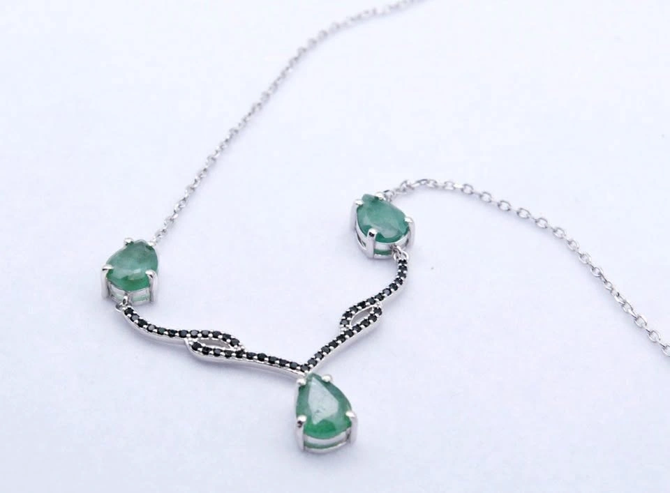 Pear Cut Emerald Necklace with Black Spinel Untreated