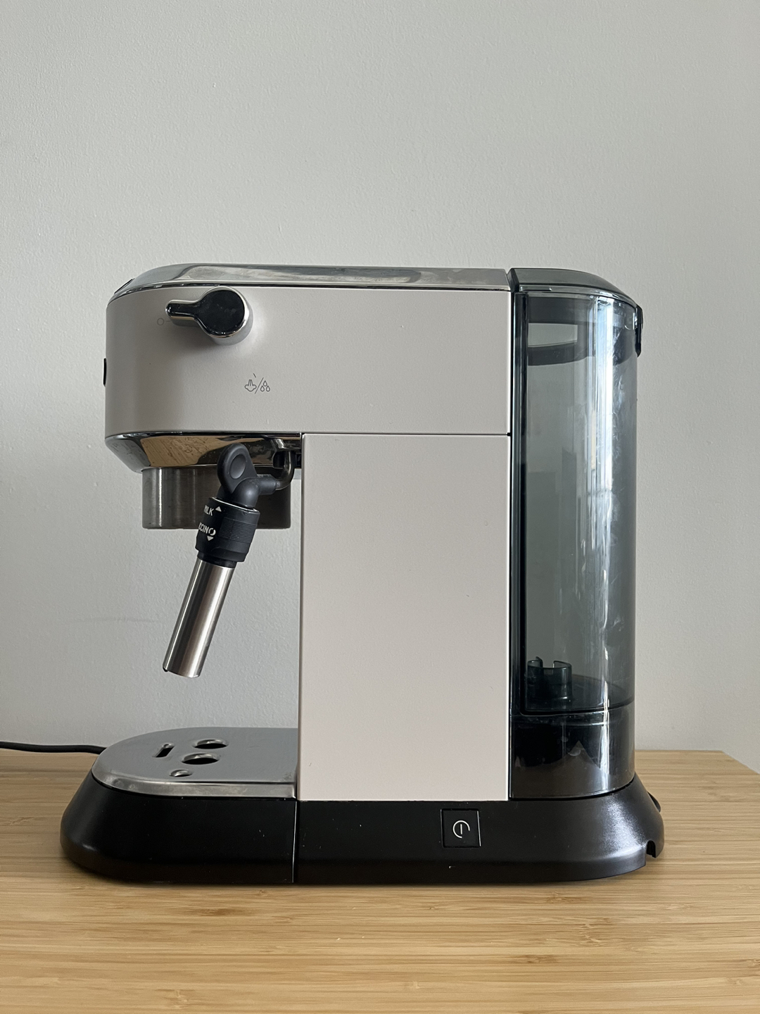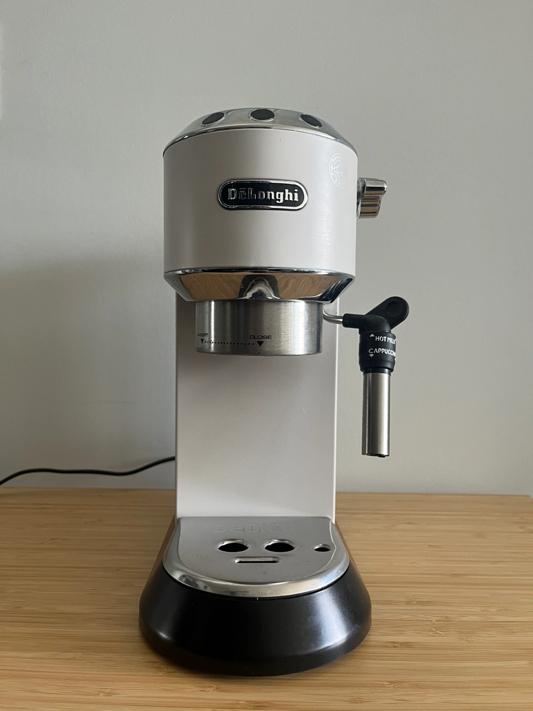 De'Longhi EC685W Dedica DeLuxe Pump Espresso Machine with Premium Adjustable Frothing Wand, in matte white Used but in great condition! Retails for around $300 to $470 (price fluctuates), though the specific color seems difficult to find. For more information on the machine: https://www.amazon.ca/dp/B072X2YD2Q/ref=twister_B0752FBZZX?_encoding=UTF8&psc=1