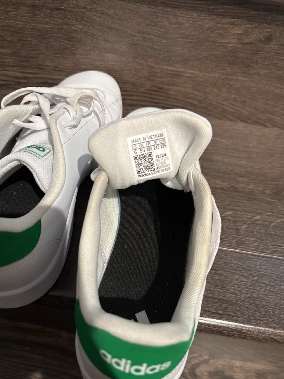 Adidas Advantage White/Green Shoes - Size 6