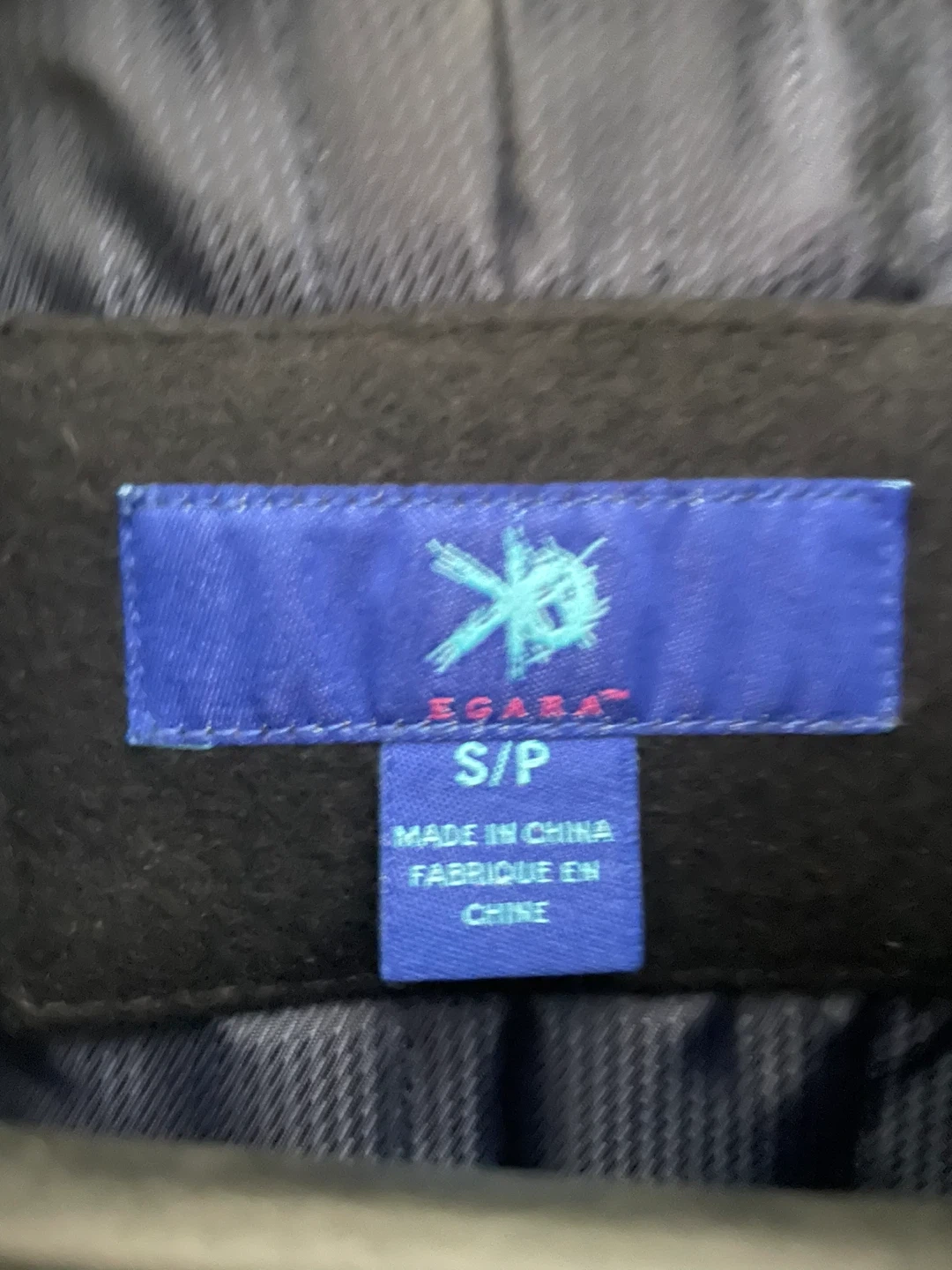 Selling a gently used black pea coat from Egaba. It's a size small and made of a warm, durable material. Perfect for layering during the colder months!