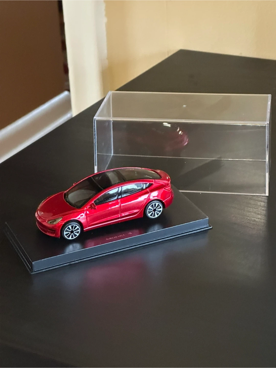 Highly detailed 1:43 Scale model car toy of the 2018 Tesla Model 3, with Acrylic Case.