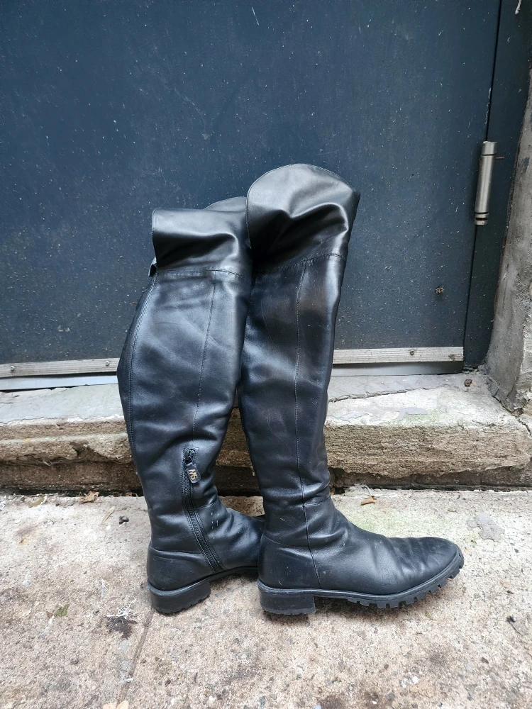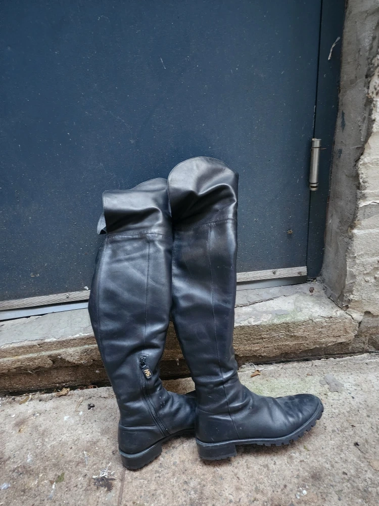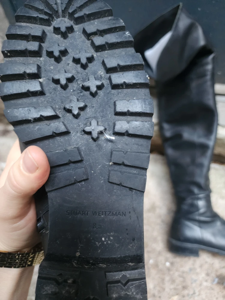 Selling a pair of Stuart Weitzman over-the-knee boots in black leather. They are a size 8.5. These boots have a stylish design and are perfect for adding a touch of elegance to any outfit.