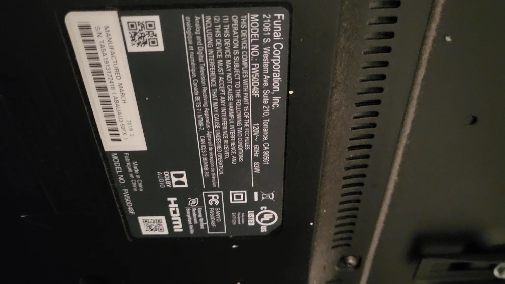 Selling a Funai 50 inch TV, model number FW50D48F. It's in good condition and ready for a new home theater setup!