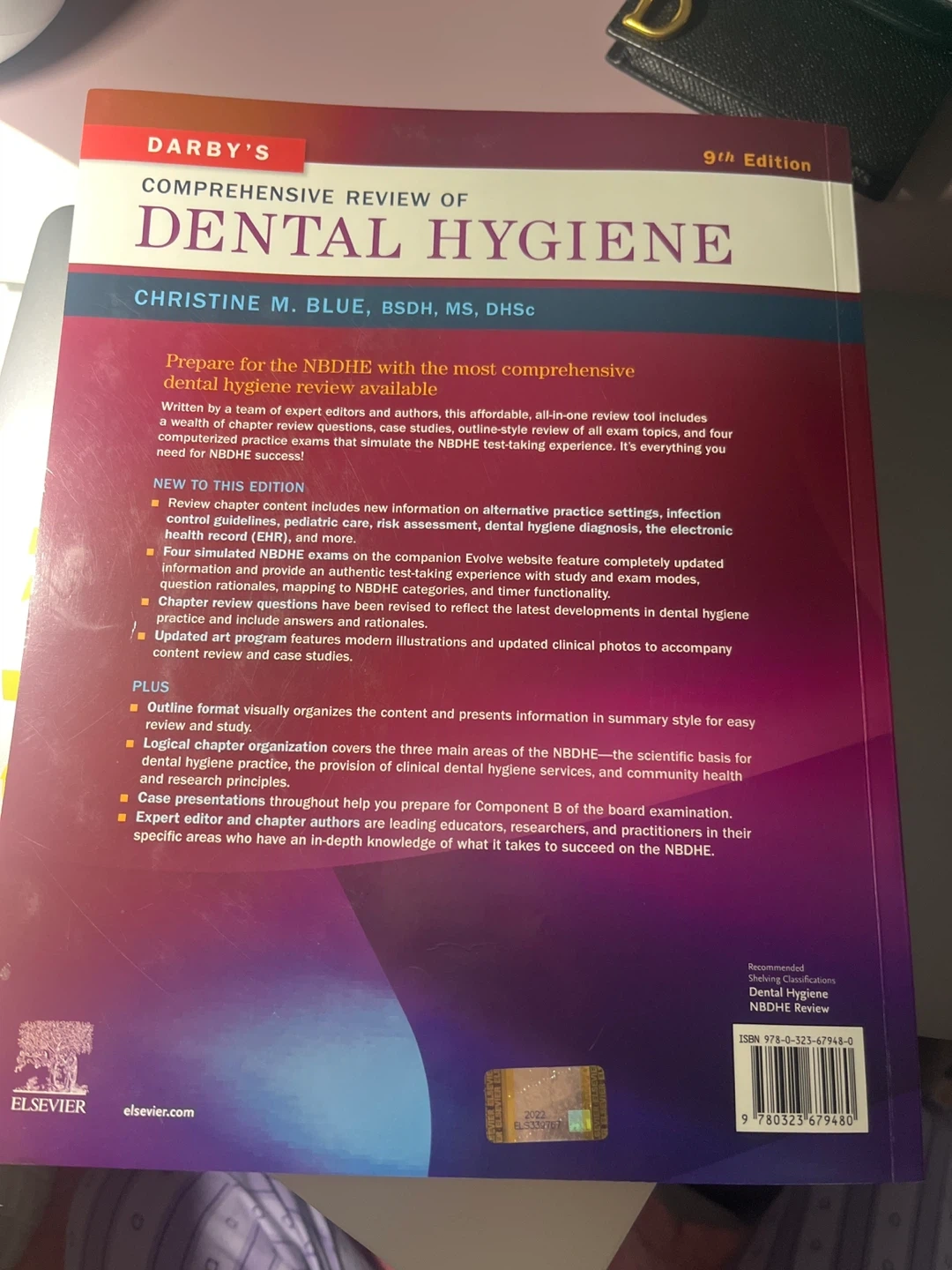 Selling Darby's Comprehensive Review of Dental Hygiene, 9th Edition. This book is a great resource for anyone studying dental hygiene and studying for the federal dental hygiene exam! There are descriptions and answers written down, used for my studies and exams. Originally bought it for around $100.