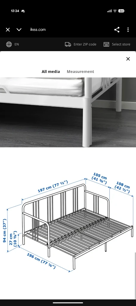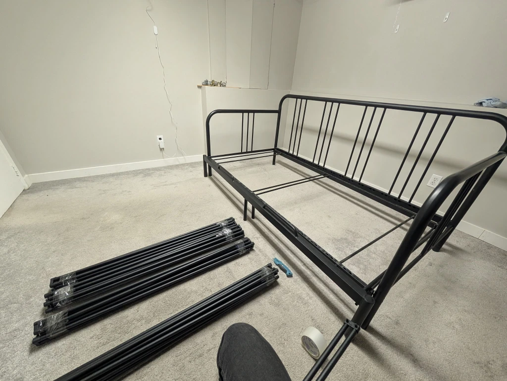 Selling a IKEA Fyresdal daybed frame in black metal. It's in great shape and has two mattresses with it. Perfect for a guest room or small space.