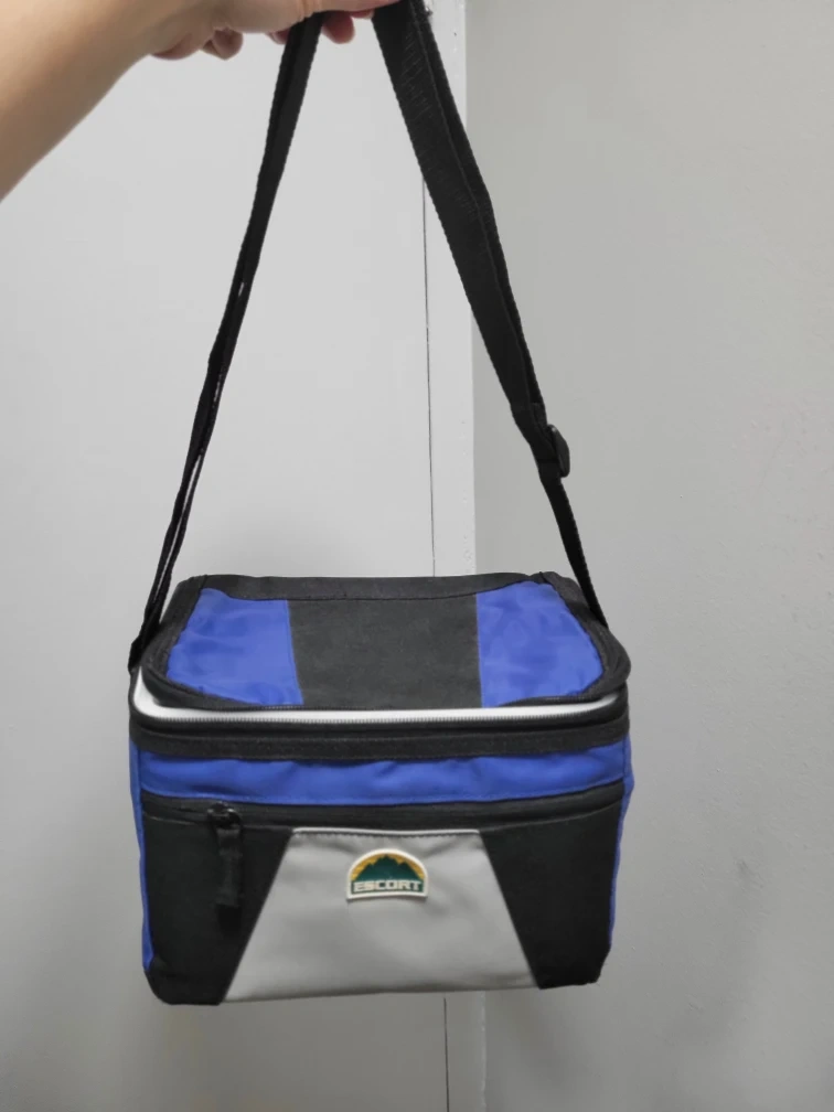 Selling a handy Escort insulated lunch bag! It's in great condition and perfect for keeping your lunch cool on the go. It features a blue and black design with a convenient shoulder strap.
