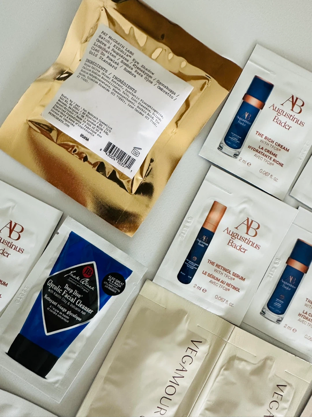 Selling a collection of luxury skincare and makeup samples! Includes items from Pat McGrath Labs, Augustinus Bader, Guerlain, Jack Black, and Vegamour. Perfect for trying out high-end products before committing to a full size. Great way to test out some new products!