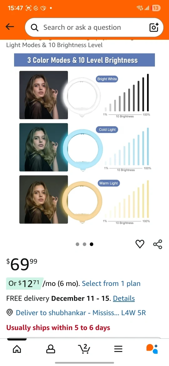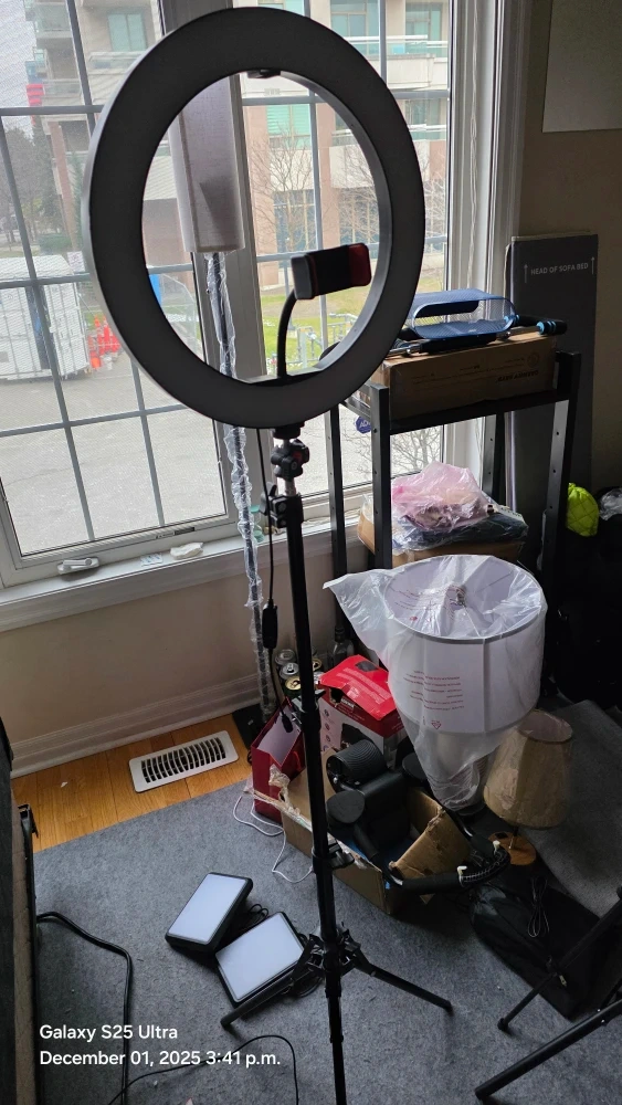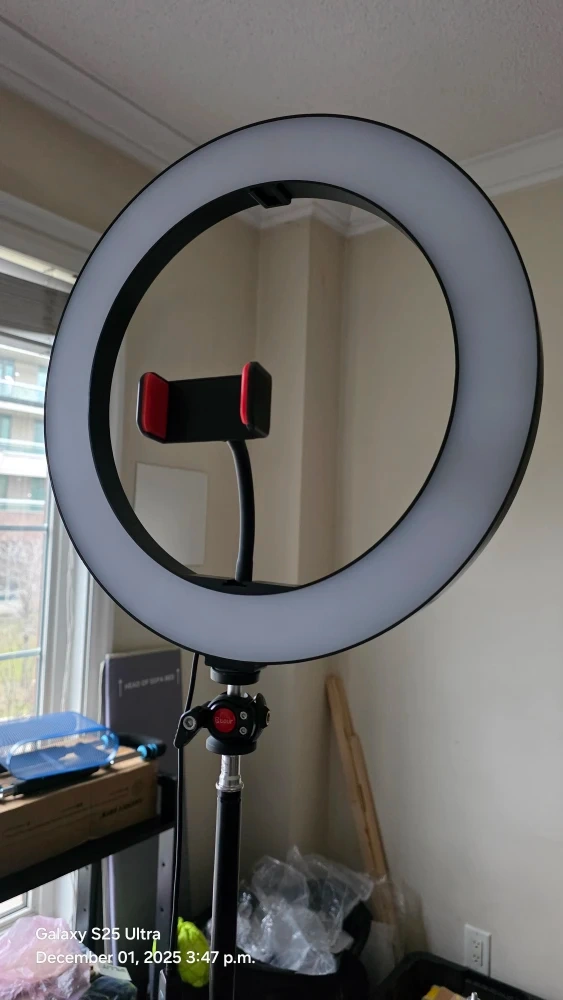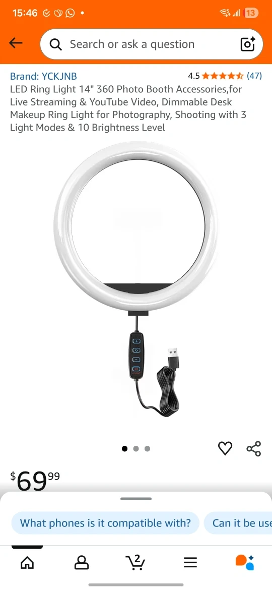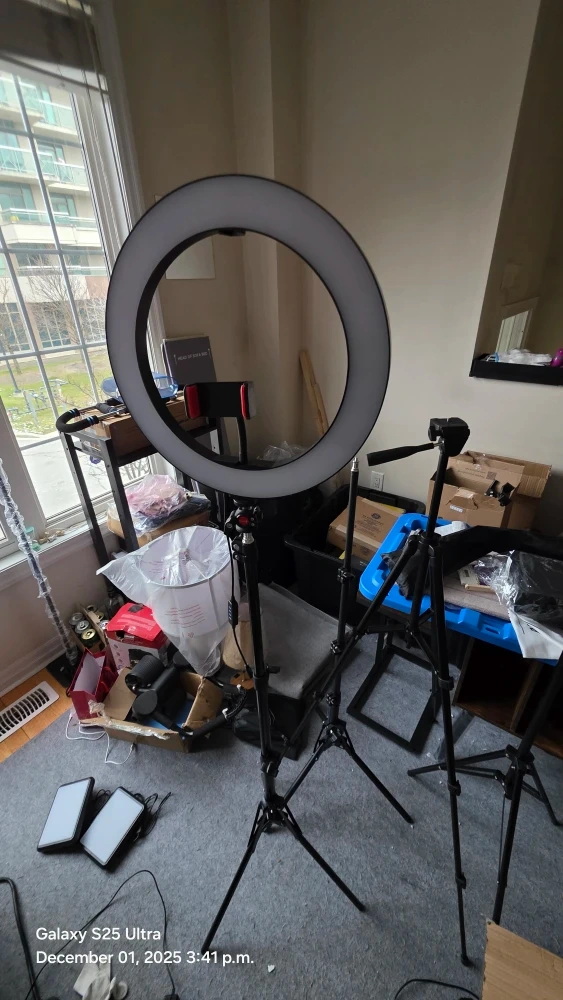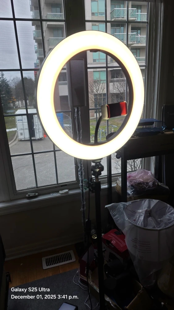 Selling a 14-inch LED ring light by YCKJNB, perfect for live streaming, photography, or makeup application! It features 3 light modes and 10 brightness levels to get the perfect lighting for any situation. Retail price for $69.99