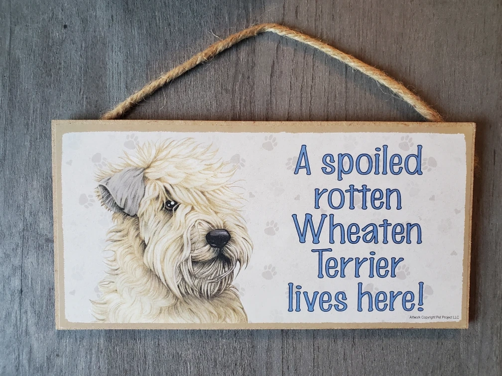 This adorable sign is perfect for any Wheaten Terrier lover! It measures 5" x 10" and is ready to hang with its attached rope.