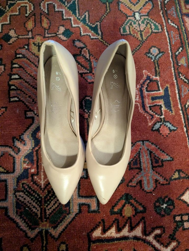 Selling a pair of Insolia × Target heels in a lovely beige colour! They're a size 8.5 and have a classic, elegant look. Perfect for dressing up any outfit!