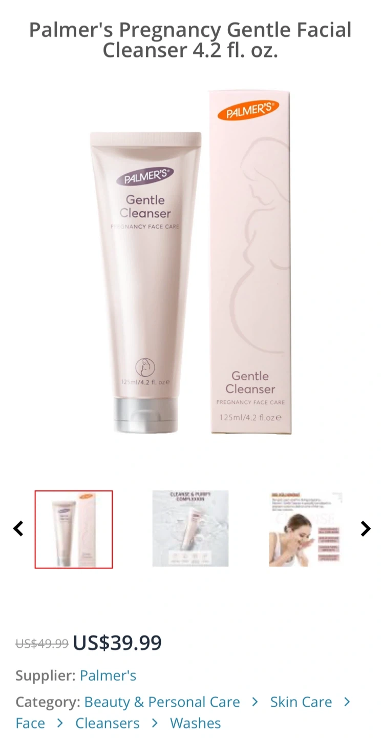 Selling a brand new Palmer's Gentle Cleanser, perfect for pregnancy face care! It comes in a 125ml/4.2 fl. oz size. This cleanser is made for pregnancy, providing nourishing hydration and gentle, sensitive care. It contains rosewater, vitamin C + E, cocoa butter, collagen, and folic acid. It expires December 12, 2028
