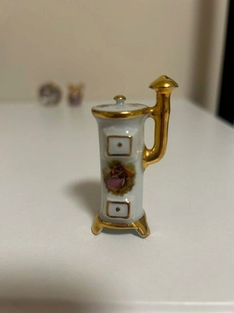 1 Limoges Porcelain Miniature Stove - Ornate design with gold detailing; Decorative miniature stove shape; Authentic Limoges France stamp