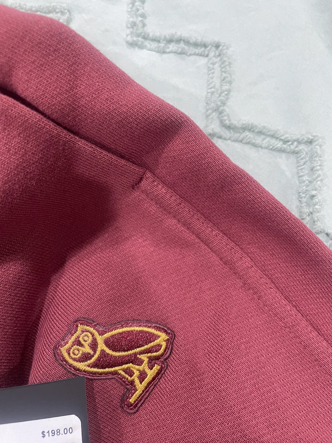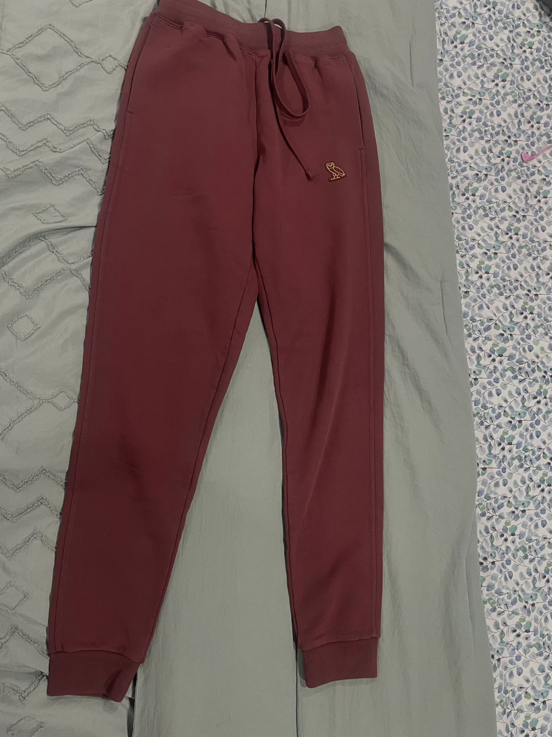 Selling a BRAND NEW pair of October's Very Own (OVO) sweatpants in maroon! They are size 2XS. Originally bought for $198.00. Open to reasonable offers. Never been worn yet, tag attached. Drawstrings on the inside.