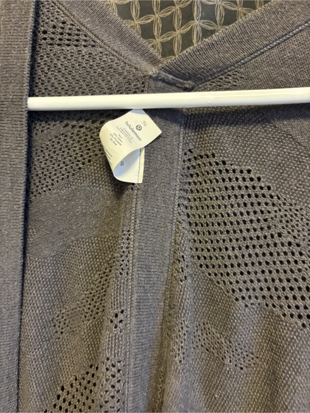 Lululemon cardigan/wrap in a lovely grey colour! It's a size OS and in great condition. Perfect for layering or wearing on its own!