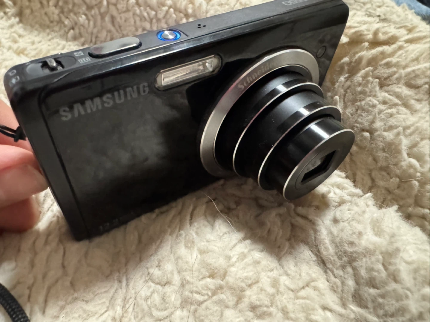 Selling a Samsung digital camera with 12.2 mega pixels. It has a 4.6x optical zoom and a Schneider Kreuznach lens. Great for capturing memories! Comes with charger has a dark spot on the side of the the touch screen that does not effect the touchscreen screen what so ever the camera works perfect