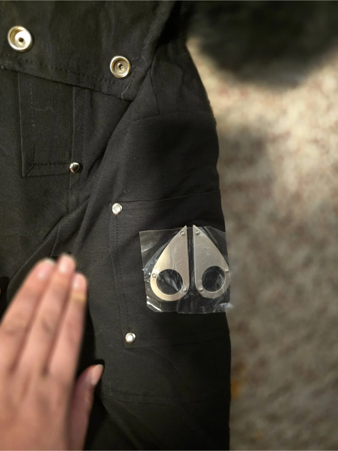 Selling a Moose Knuckles down filled bomber jacket in size L. It's in great condition and comes with the original packaging