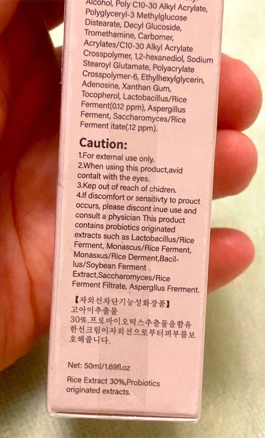 It's SPF50+ PA++++ and contains rice and probiotics. It comes in a 50ml / 1.69fl.oz size. It expires November 24, 2027