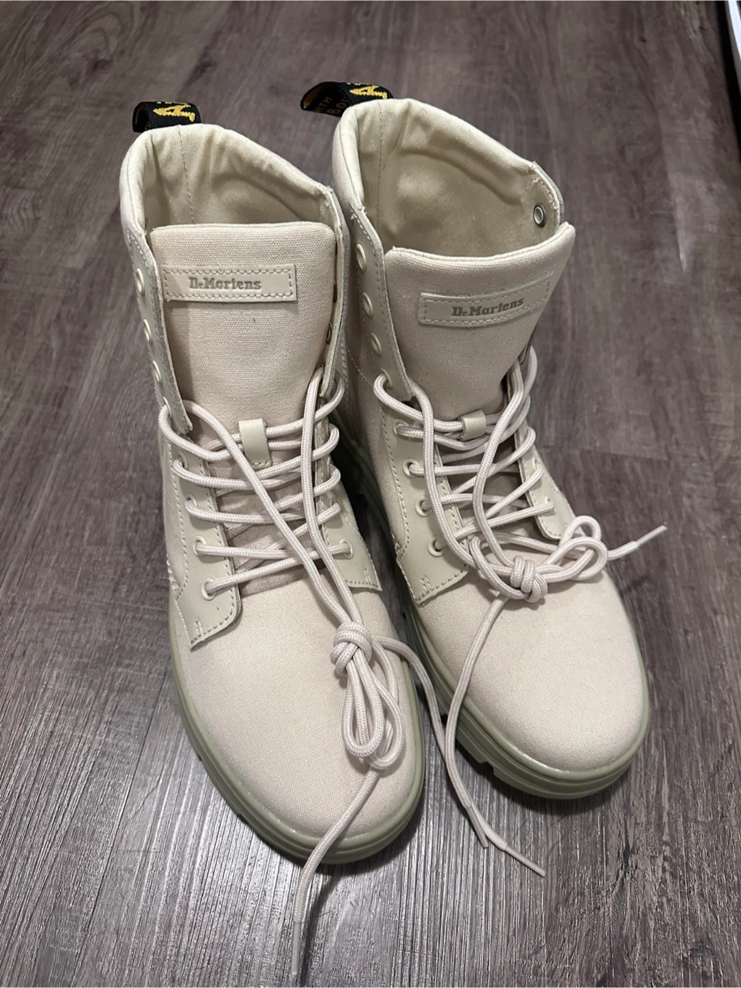Selling a pair of Dr. Martens Combs boots in a lovely neutral colour! They are a US men's size 9. These have the classic Dr. Martens look with a modern, lightweight feel. Perfect for everyday wear!