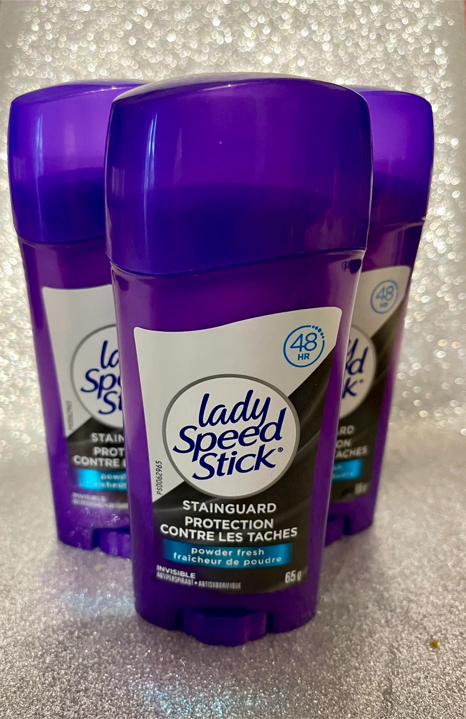 Selling three Lady Speed Stick StainGuard in Powder Fresh scent. It provides 48-hour protection against stains and odours. A great antiperspirant!