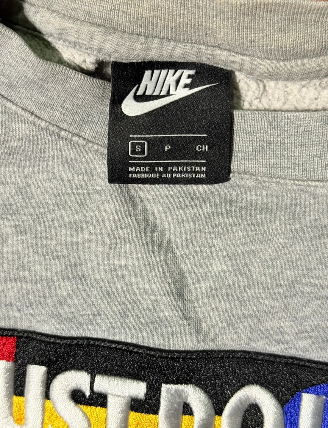 Selling a Nike sweatshirt with the iconic "Just Do It" design! It's a size small and in a neutral gray color. Perfect for casual wear or workouts!