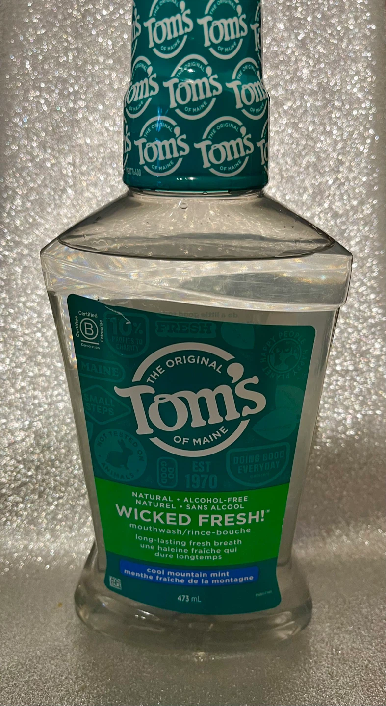 Selling a bottle of Tom's of Maine Wicked Fresh! mouthwash in cool mountain mint flavour. It's a natural and alcohol-free mouthwash that provides long-lasting fresh breath. The bottle contains 473 mL of mouthwash