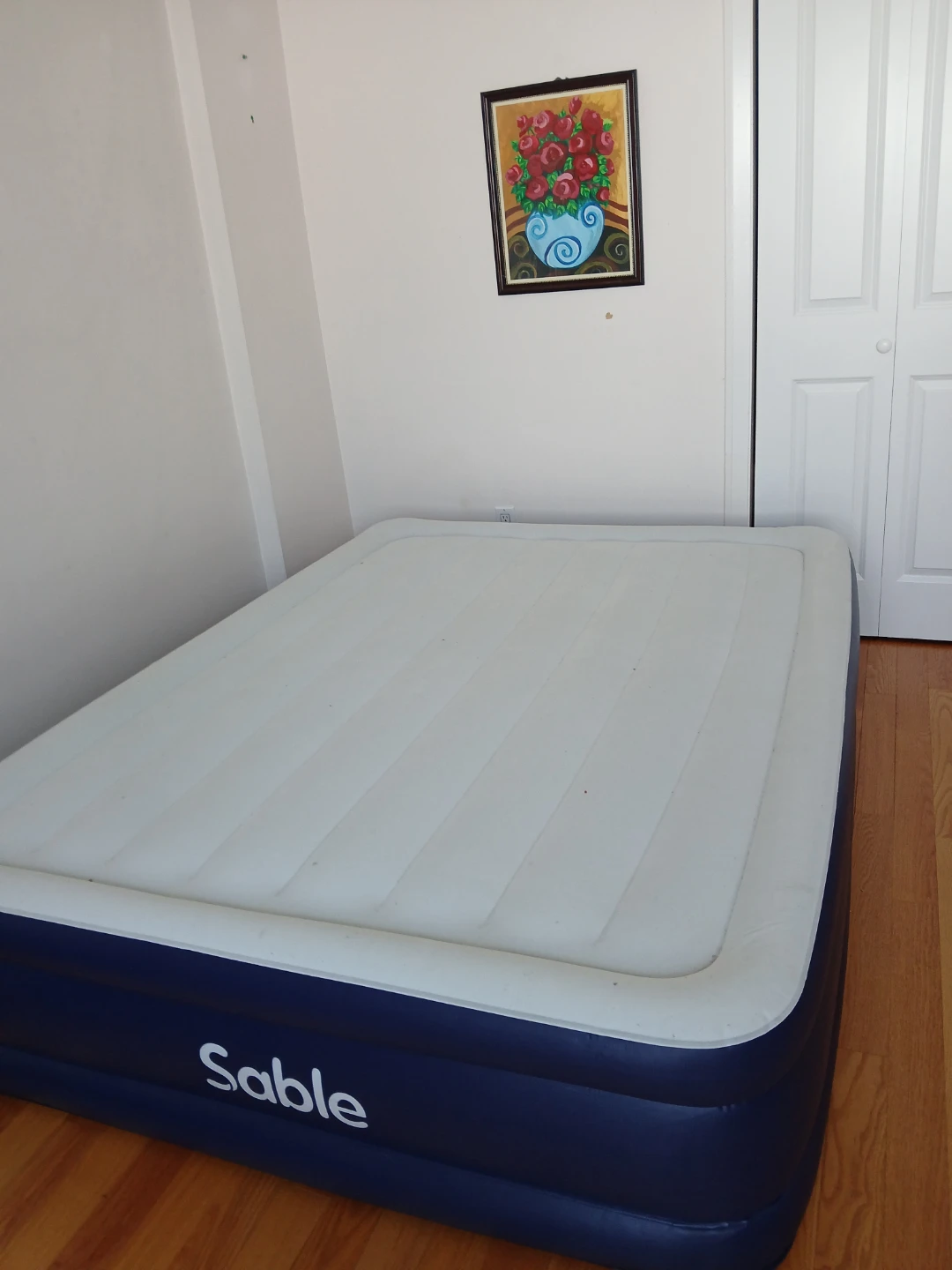 Selling a Sable air mattress in great condition! It's perfect for guests or camping trips. It's easy to inflate and deflate, and it's very comfortable to sleep on. It's been gently used and well taken care of