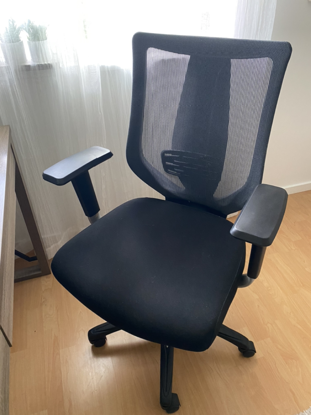 Very ergonomic refined black office chair with armrests and chair hight adjustment.