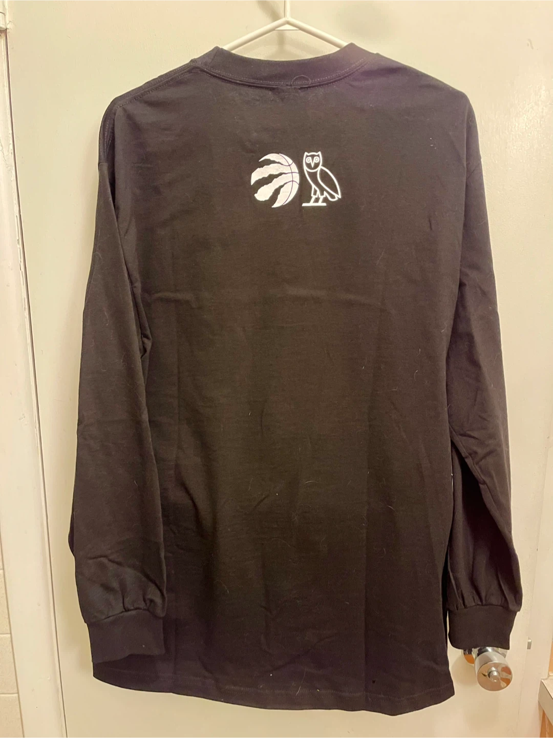 Selling a black OVO (October's Very Own) long sleeve shirt featuring Toronto Raptors logos. The shirt is a size large and has the OVO owl logo on the back. Great for any Raptors fan! It's brand new from game one of the 2019 NBA finals and was never worn.