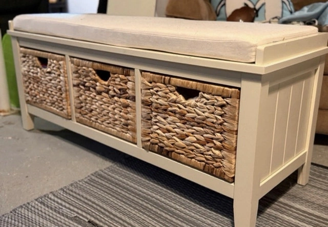 Buy & SellBench with Storage BasketsBench with Storage Baskets$6047 x 16 Inches * Comfortable cushioned top * Three removable woven baskets * Sturdy frameWHERE TO MEETCheck LocationView MapSELLERReosO'Neill433 reviews1 chats·1 favorites·91 viewsSEND CHAT TO SELLERHi Reos! I’m interested in your listing.Hi Reos! I’m interested in your listing.Get the Karrot app to chatSign In to chat