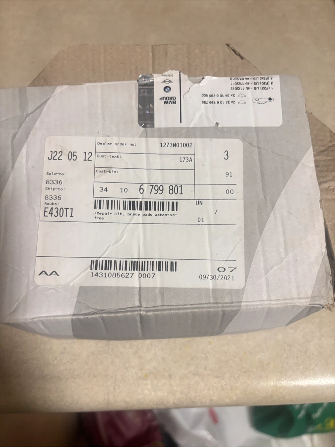Selling a BMW brake pad repair kit, part number 34 10 6 799 801. This kit is asbestos-free and comes in its original box. Perfect for your BMW!