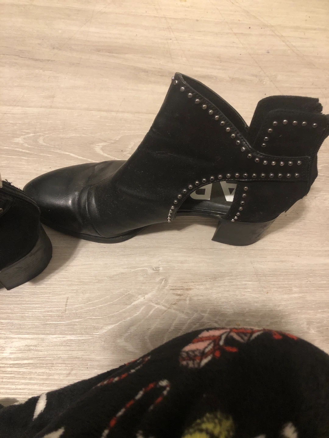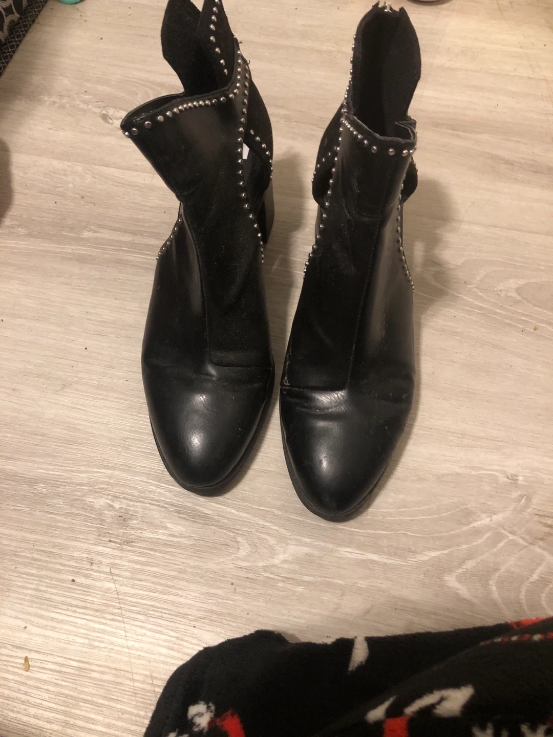 Selling a pair of Zara Trafaluc black ankle boots in EU size 40. They have a studded design and a unique cut-out detail on the sides. These boots are perfect for adding a bit of edge to any outfit