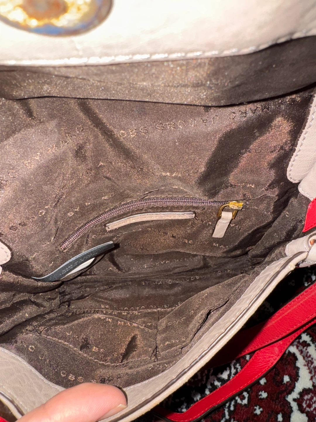Selling a cute Marc by Marc Jacobs crossbody bag! It features a red and grey colour scheme. The bag shows some signs of wear but still has lots of life left in it!