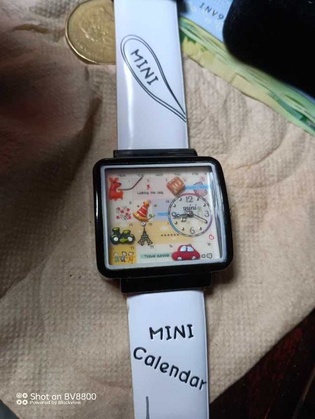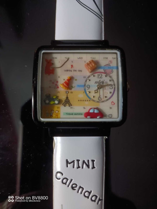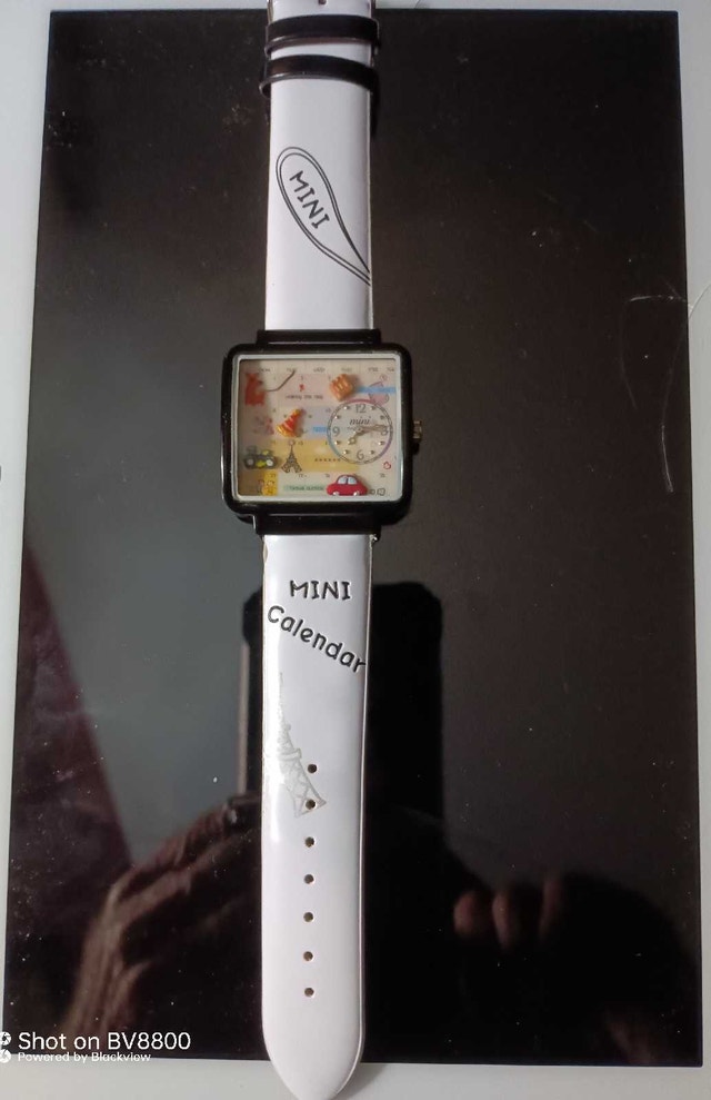 Check out this used Mini Calendar watch, a quirky timepiece that's sure to spark conversations! It's in good condition, sporting a playful design with miniature scenes right on the dial. While it tells time with a wink, please note it's pre-loved and not factory-fresh. If the Kijiji ad is up, the watch is still available, ready to add a dash of whimsy to your wrist!