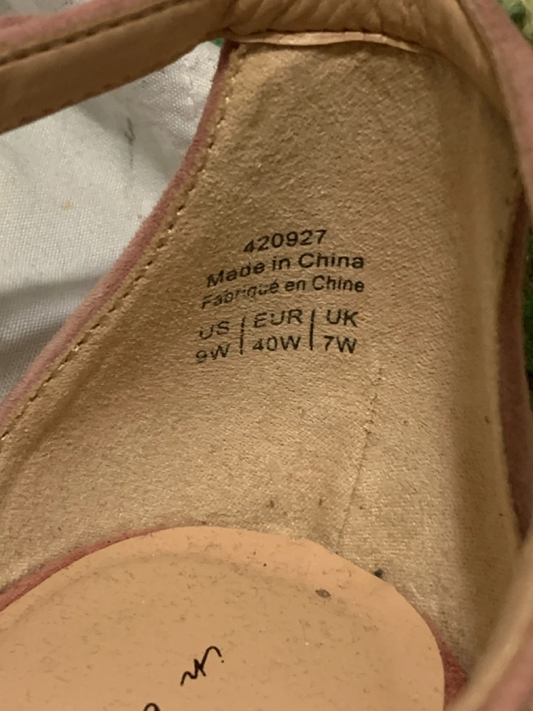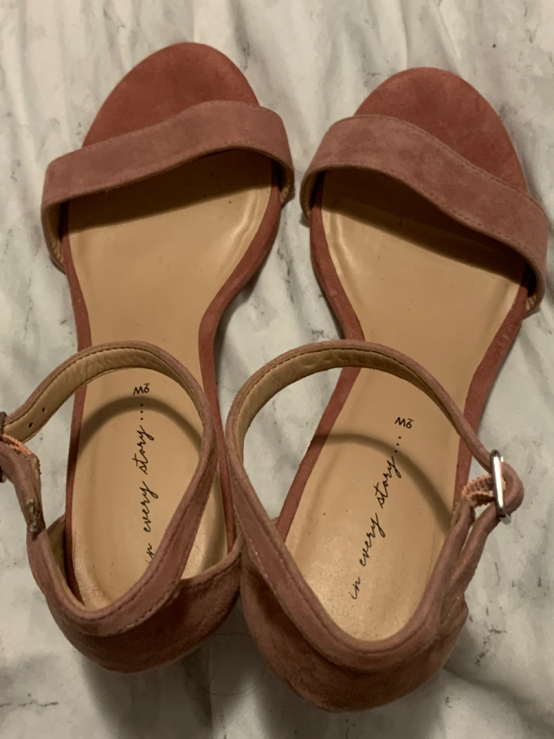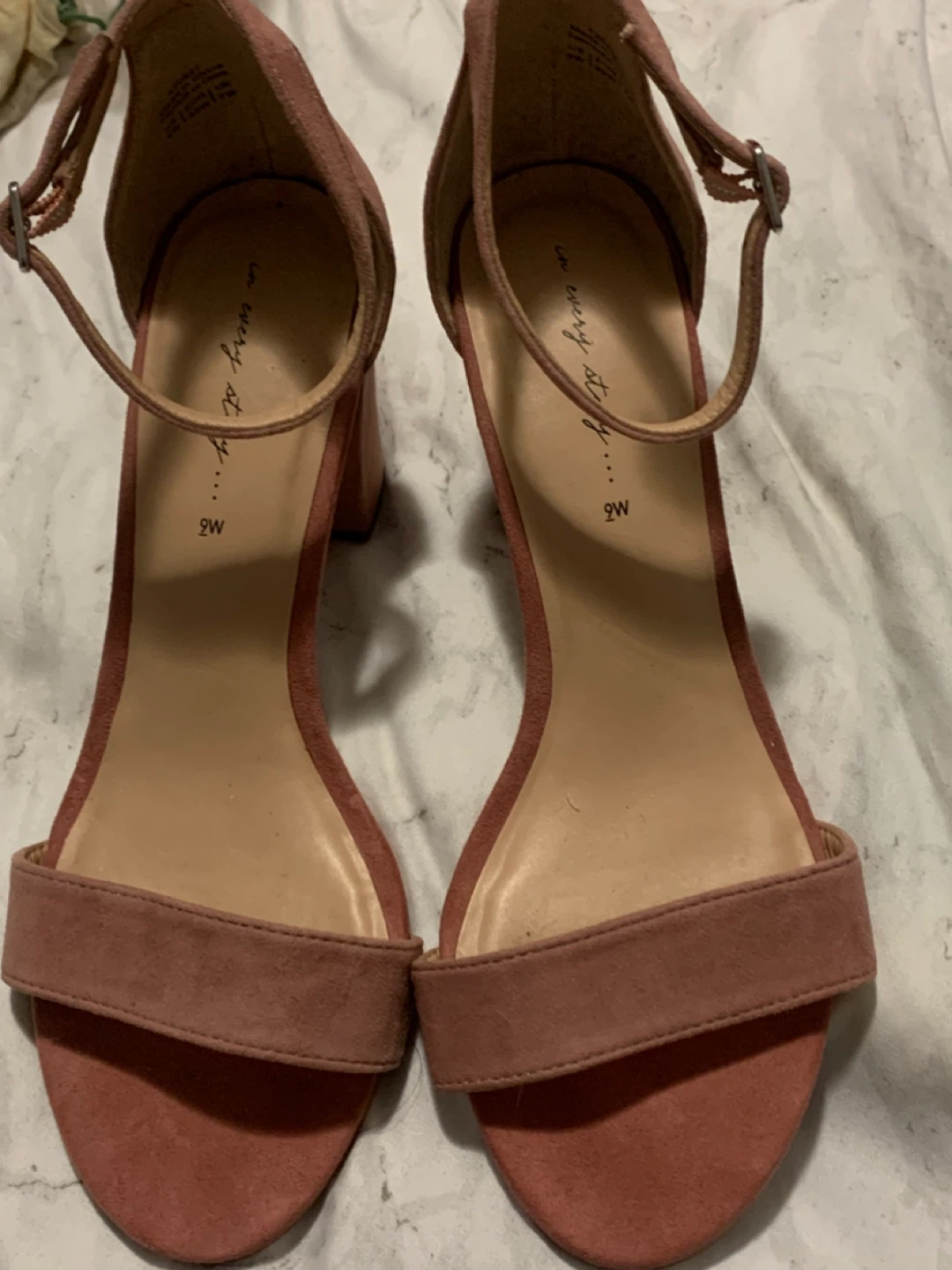 A pair of "In Every Story" lovely pink colour ankle strap sandals. They are a women's size 9W. My daughter wore these once for her Graduation.