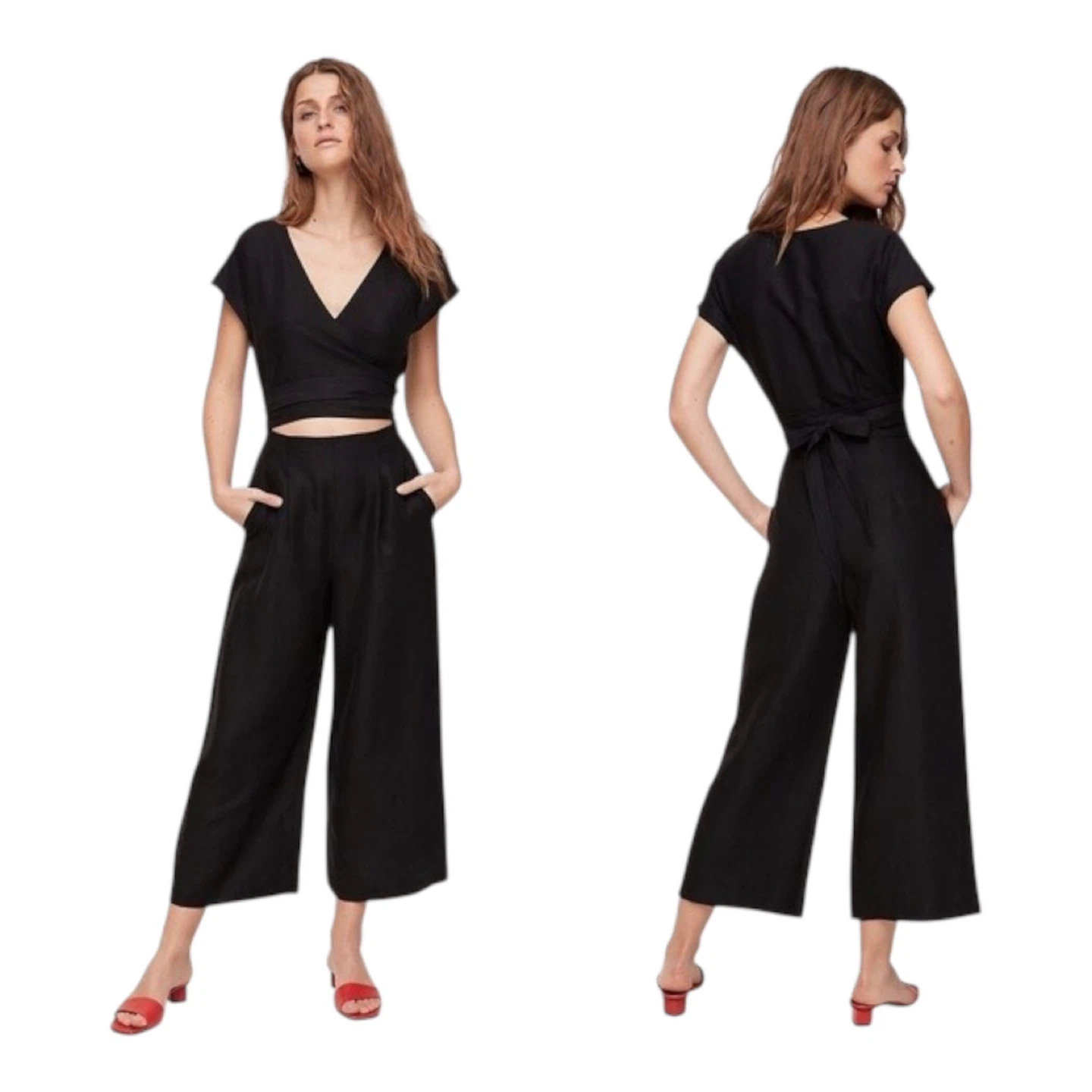 Aritzia Wilfred Black Brax Linen Blend Wrap Jumpsuit Size 6