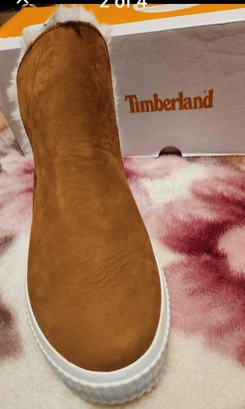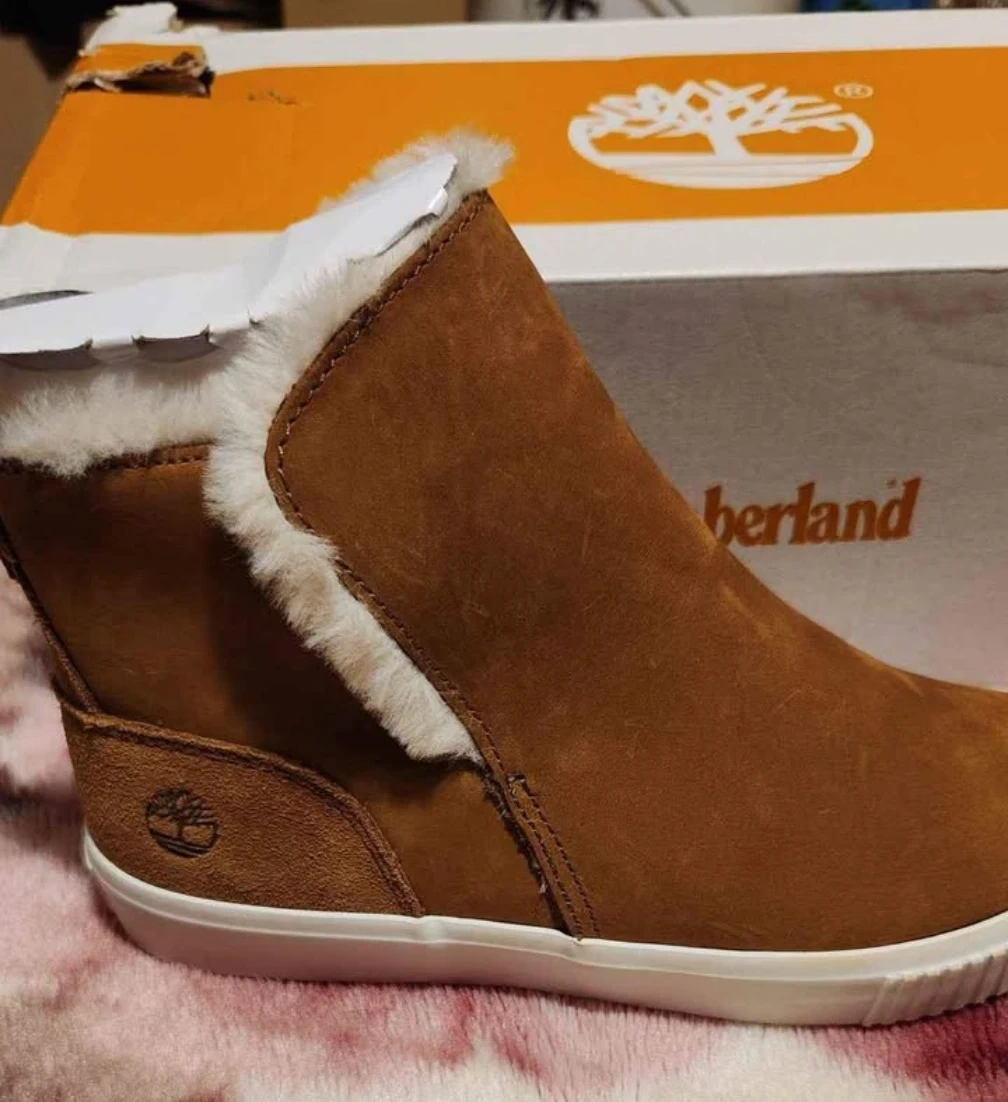 Selling a pair of Timberland boots! They're a lovely brown colour and have a soft fur lining to keep your feet warm and cozy. They come with the original box