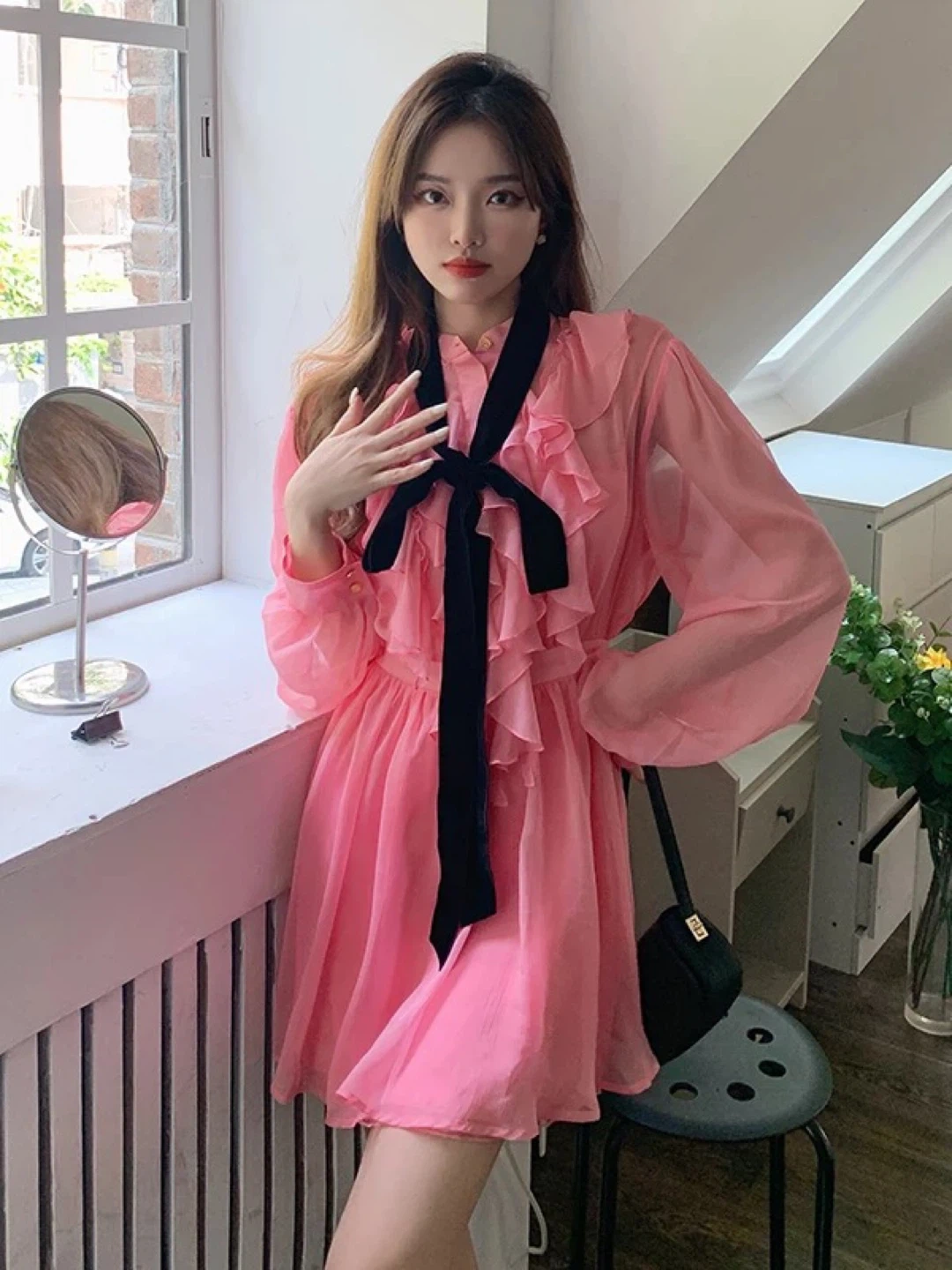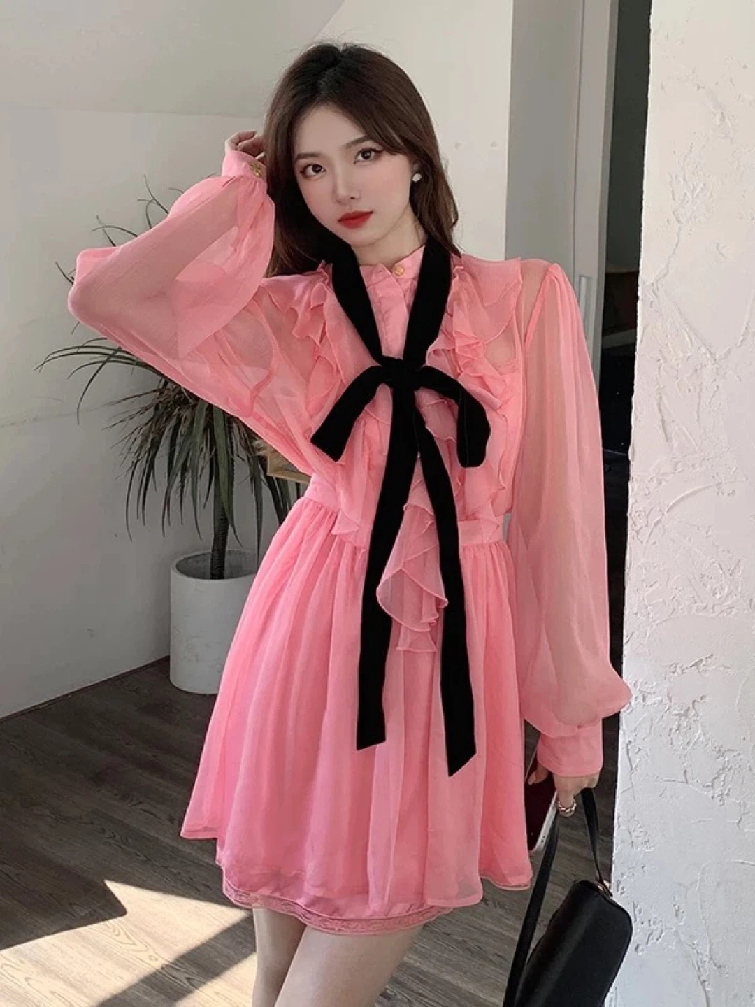 New Pink Chiffon Mini Dress with inner dress