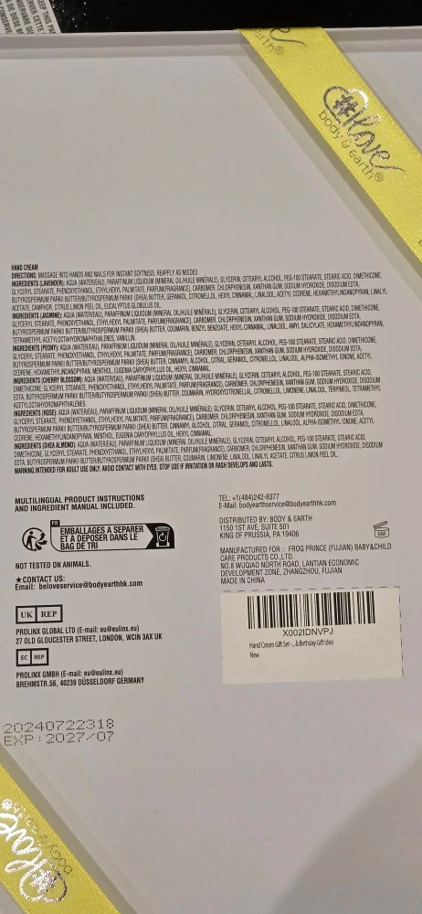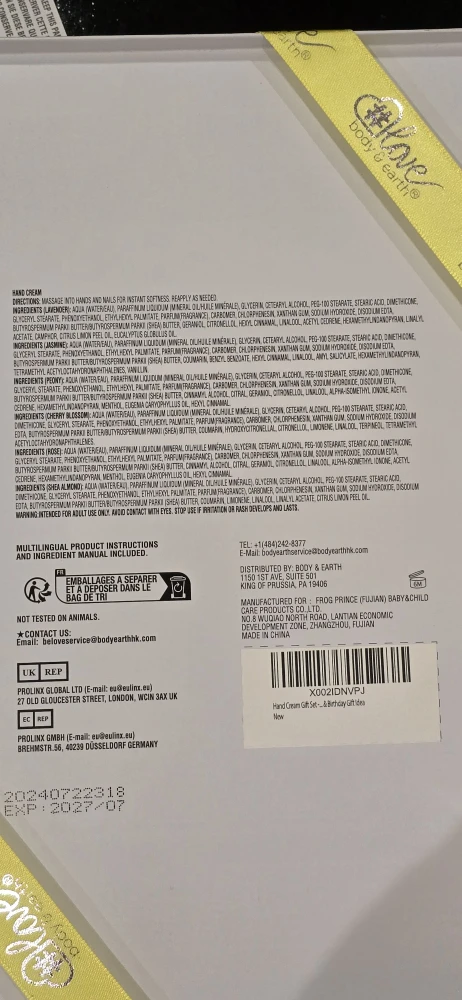 Brand new, sealed, never opened or used! Body & Earth hand cream set! It includes 6 hand creams, each 1.0 fl oz (30 mL) in a beautiful tin! Enriched with shea butter, these creams are perfect for keeping your hands soft and moisturized. The expiry date is July 2027, so you'll have plenty of time to enjoy them! Perfect for gift giving!