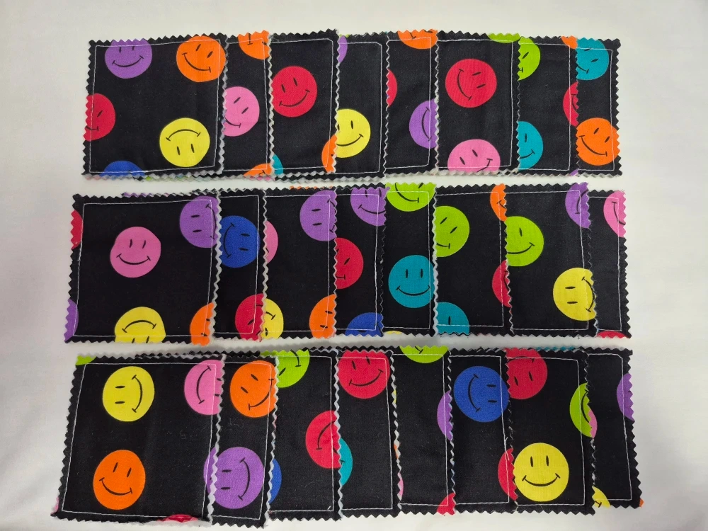 I'm selling a collection of handmade fabric squares with various fun patterns, including Batman, Mario, Spiderman, and more! They come with a cute drawstring bag featuring animal designs. Perfect for young children to help train and develop concentration. Fabric pieces with no sharp edges, washable and it has its only storage bag. Each bag holds 12 sets, 24 pieces. 100 % cotton, cards measure 3.5 in x 3.5in, bag measures 6in x 10in. Same print on one side and 2 of each print on opposite side. Pickup location is Bathurst and Dundas street area on Euclid avenue.