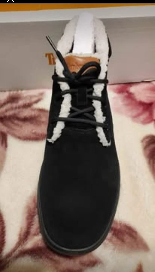 Selling a pair of Timberland boots in black suede with shearling trim. They are in excellent condition and come with the original box! Perfect for keeping your feet warm and stylish during the colder months