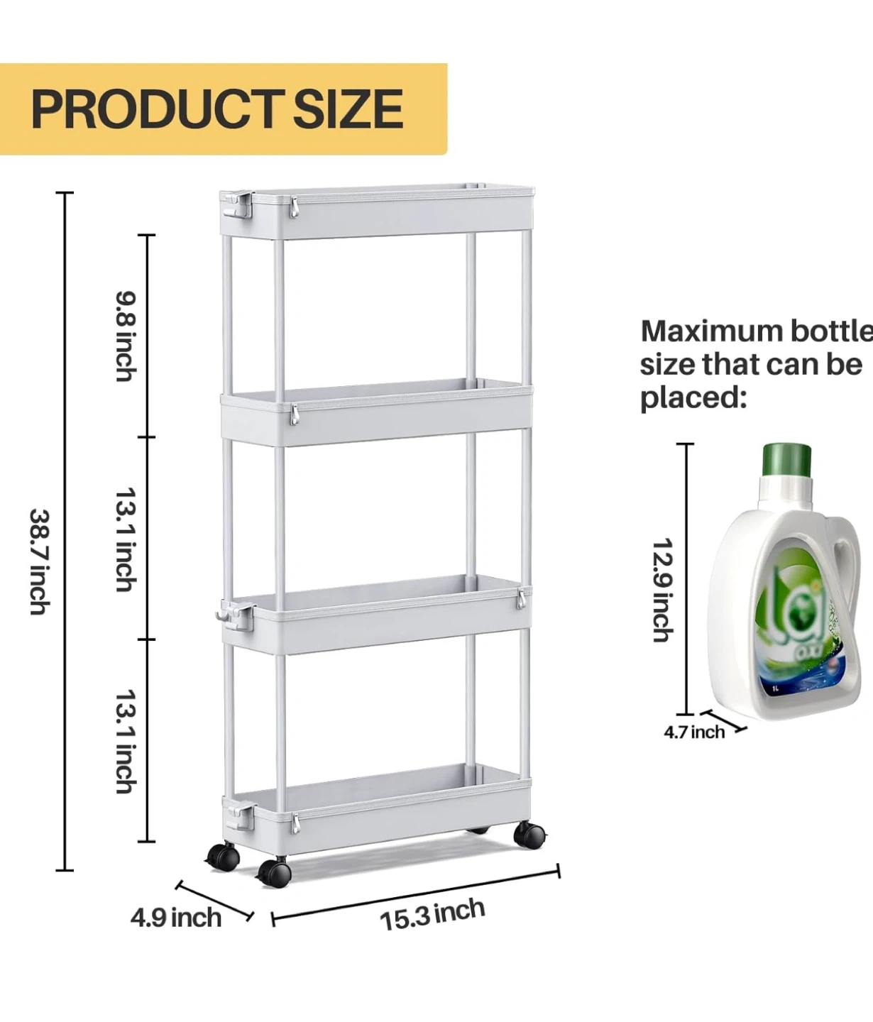 Slim 4-tier rolling storage cart — perfect for bathrooms, kitchens, under-sink organization, laundry rooms, or any narrow spaces.
