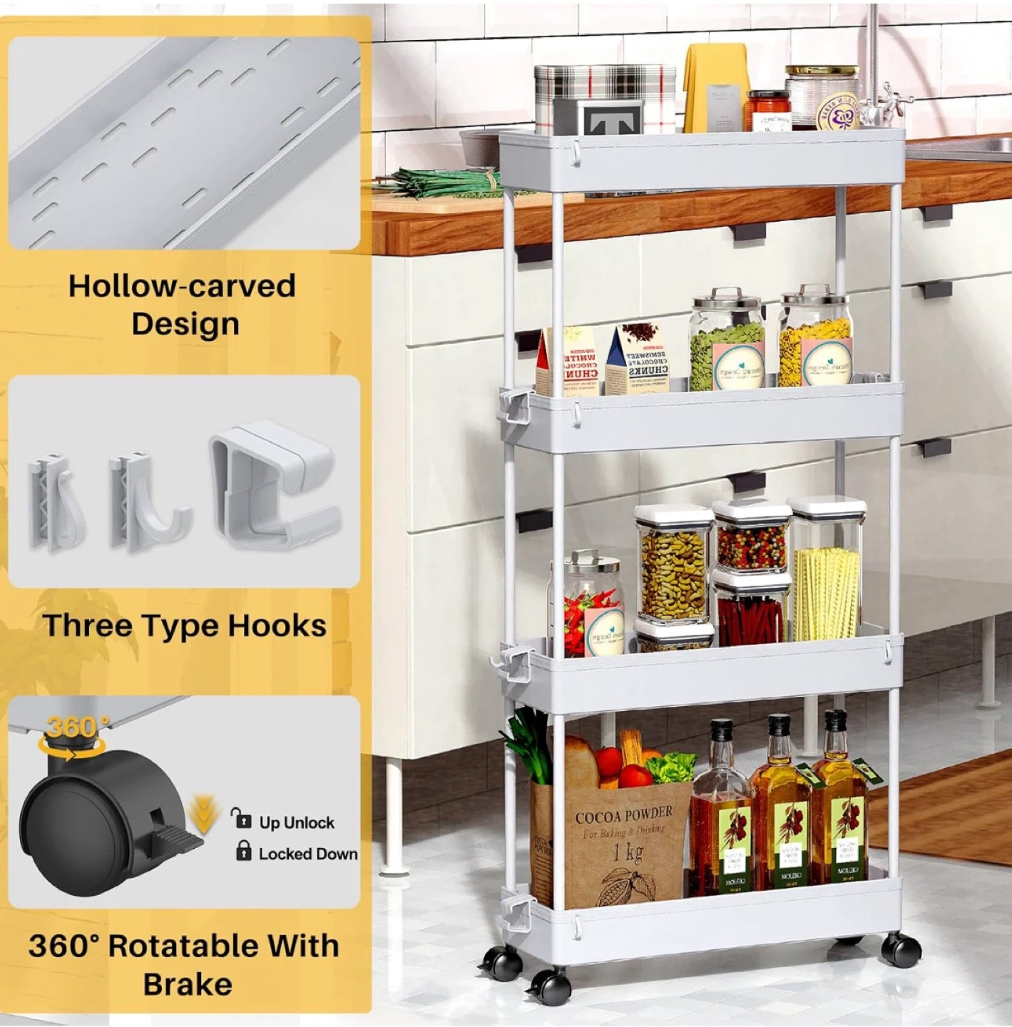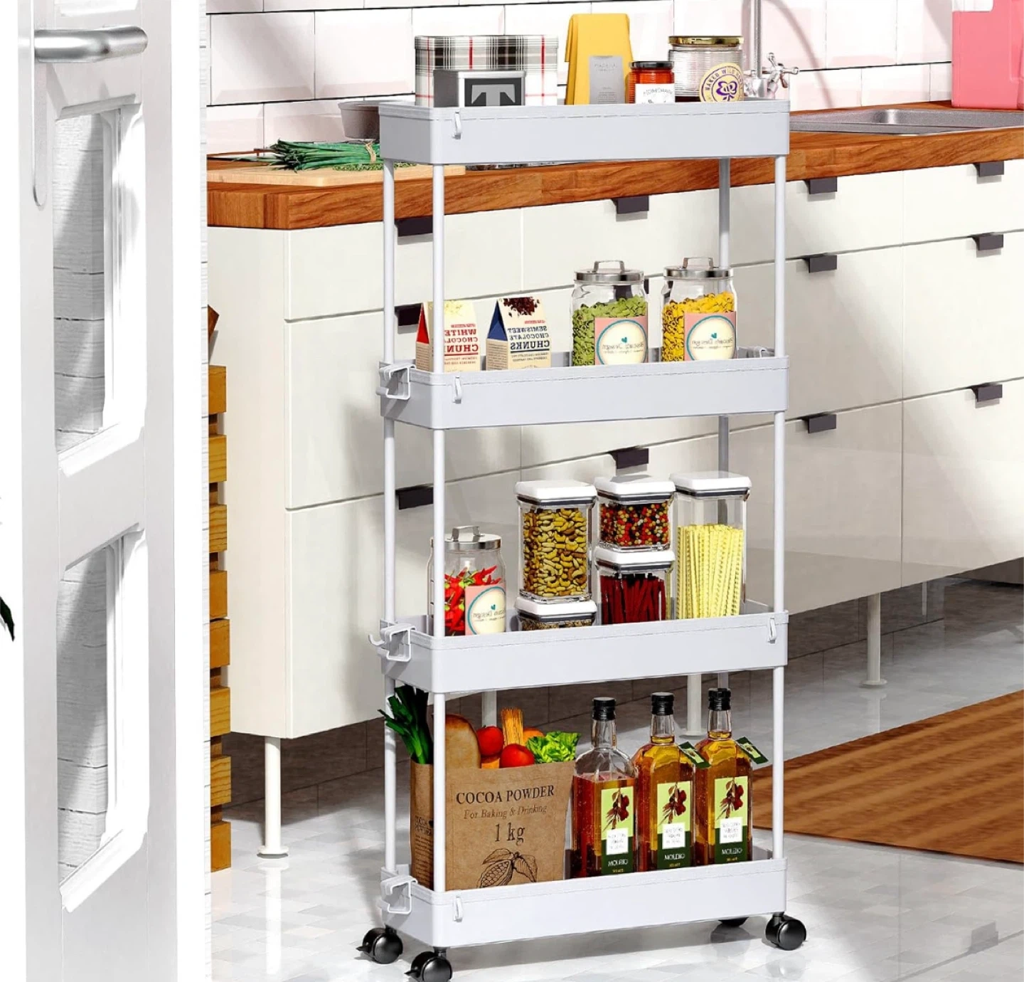 4-Tier Rolling Storage Cart – Slim Design