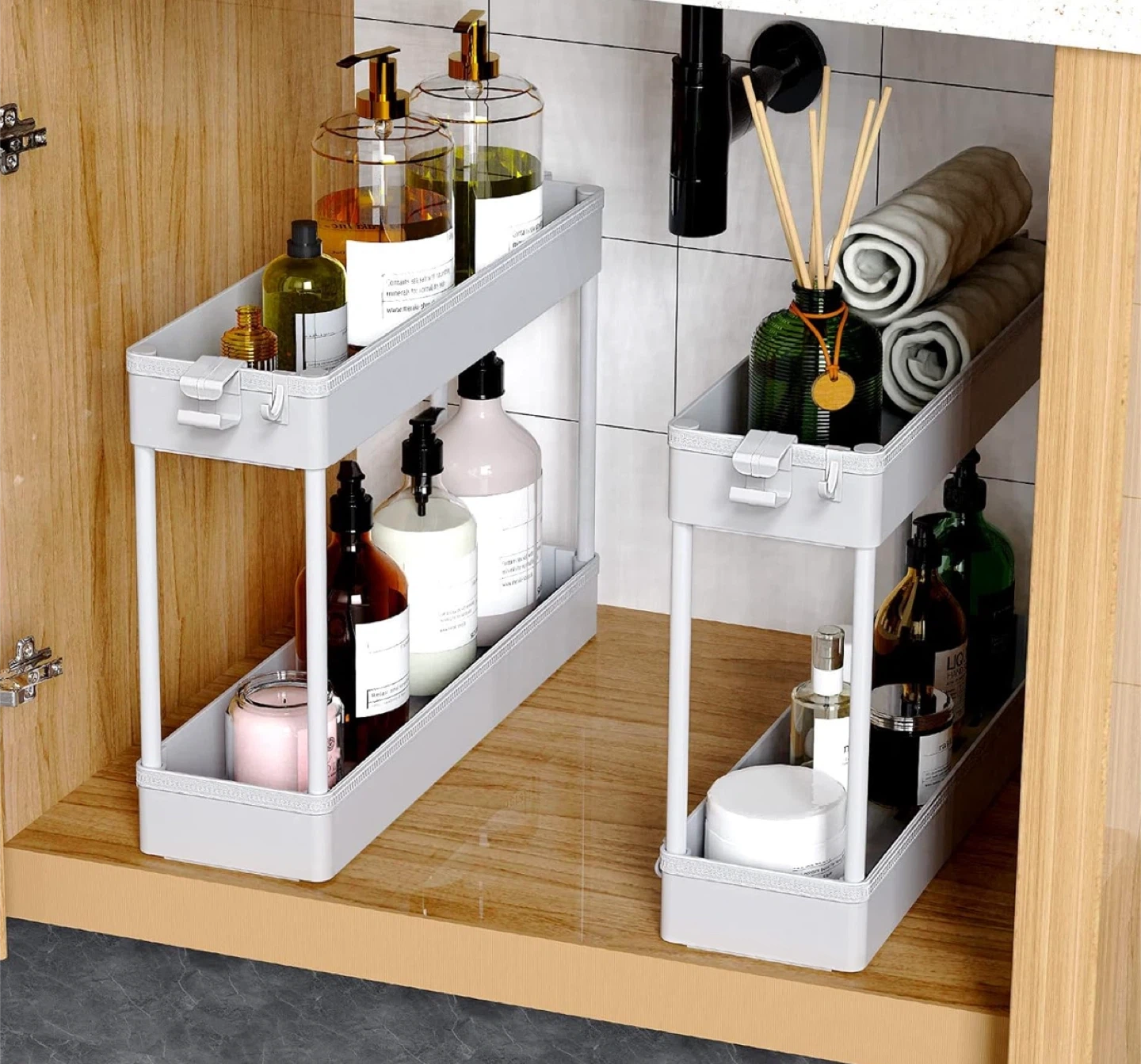 Great for storing cleaning supplies, toiletries, spices, pantry items, snacks, or beauty products.
