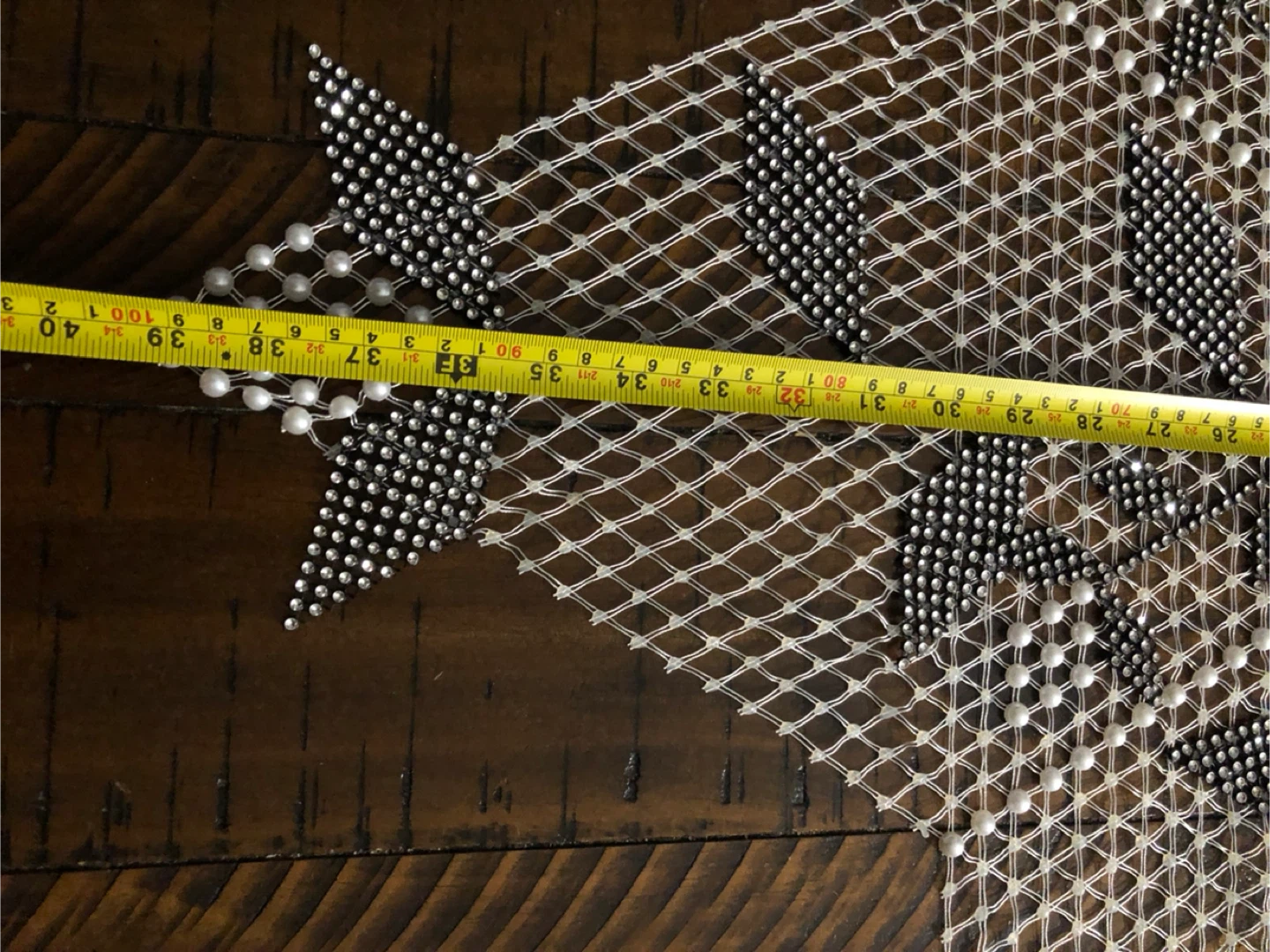Decorative Beaded Snowflakes and Star Table Runner, 39 Inches