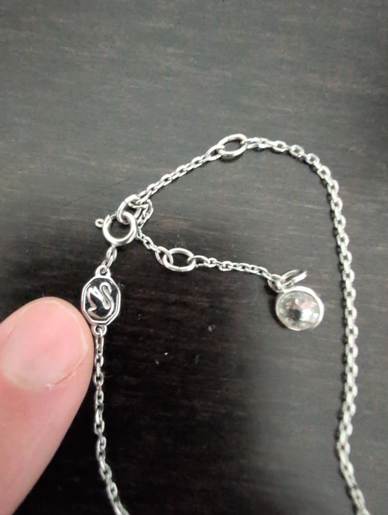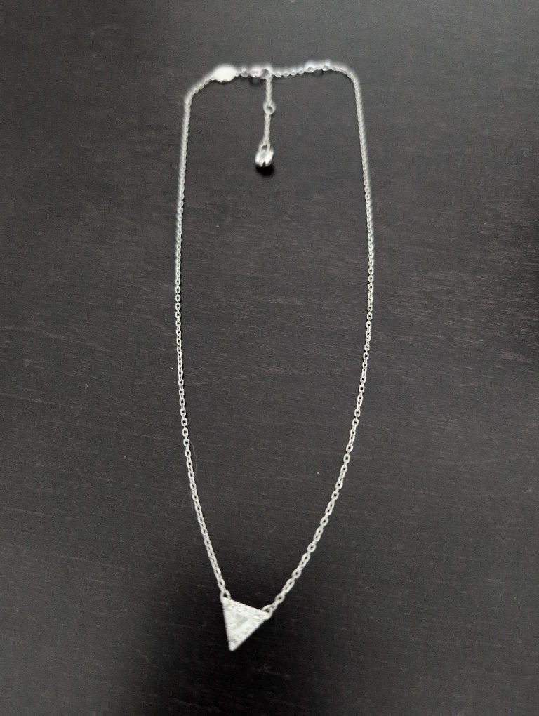 Selling a lovely Swarovski necklace with a silver chain and a triangle pendant. It's in great condition and ready to add a touch of sparkle to your outfit!