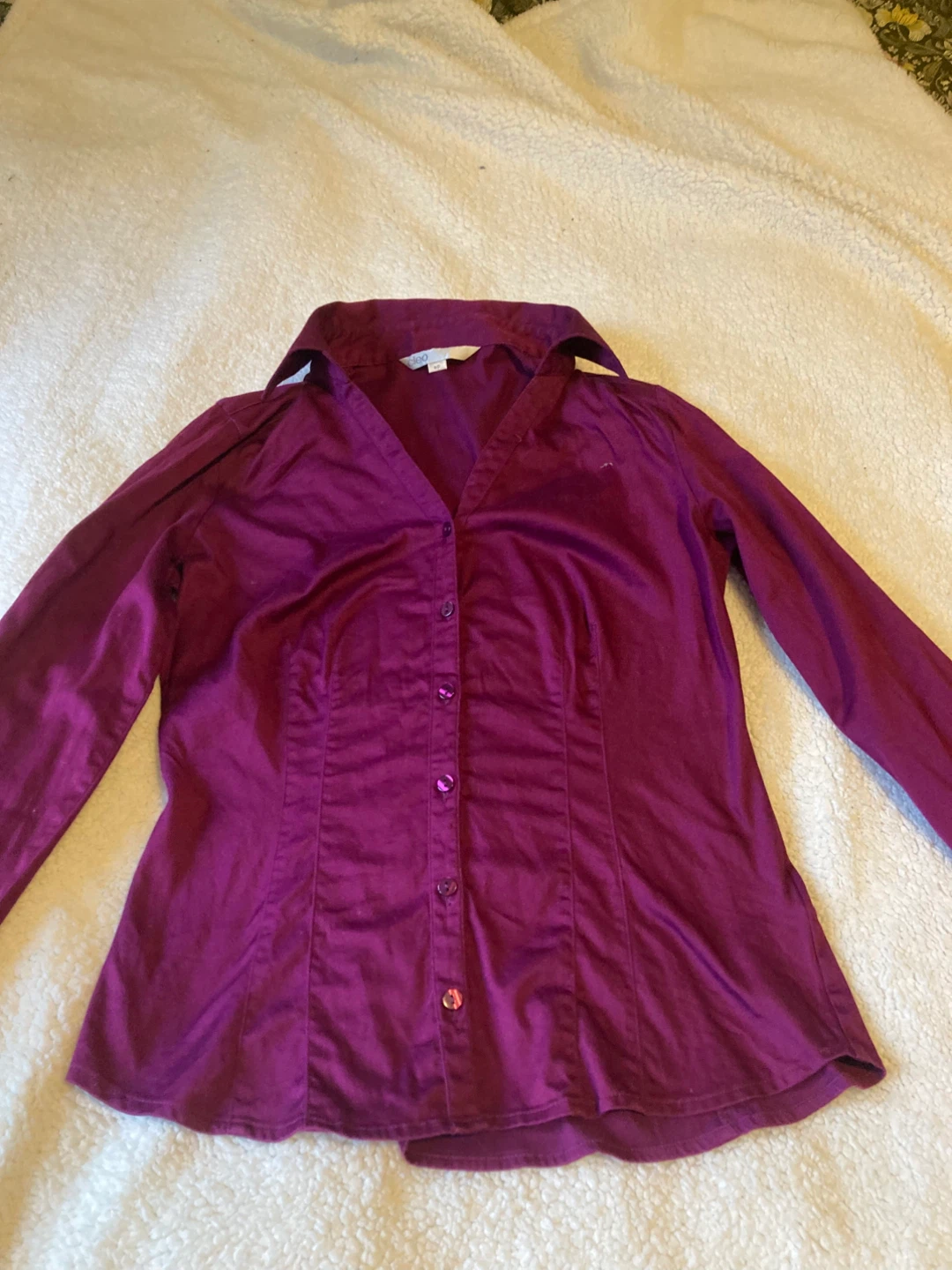 A cute Cleo blouse in size small. Excellent quality cotton that holds its shape, with flattering tailoring. It's a lovely fuschia colour and in near new condition! Worn once and washed.