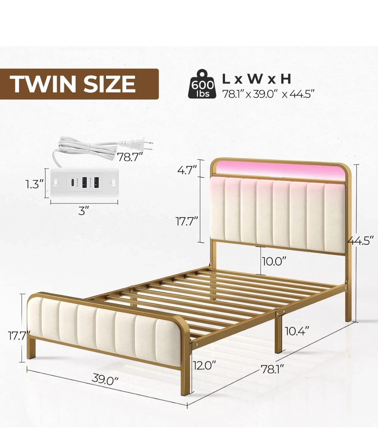 Buy & SellTwin Size Bed Frame with LED LightTwin Size Bed Frame with LED Light$100Selling a twin size bed frame. It features a headboard with LED lighting. Dimensions are 78.1" x 39.0" x 44.5".ConditionLike newWHERE TO MEETApView MapSELLERverifiedJennyKingsbridge600 reviews1 chats·0 favorites·11 views
