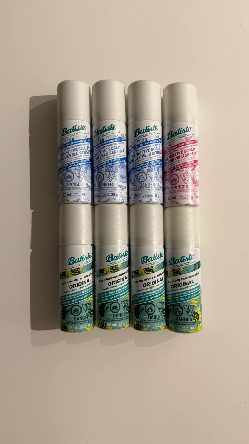 I have some new Batiste dry shampoo! There are a few 'Original' and 'Sensitive Scalp' options available. Each bottle is 50 mL, perfect for on-the-go freshness. It refreshes hair without drying it out, leaving a classic clean scent