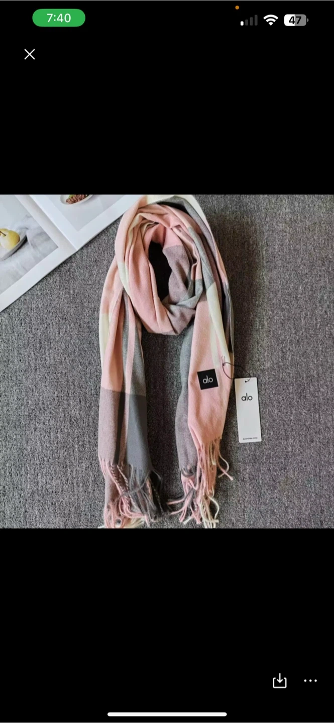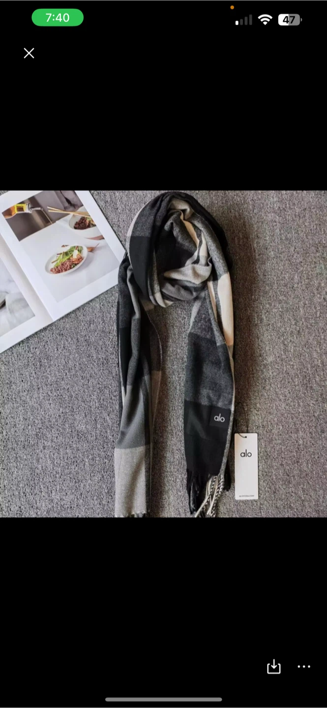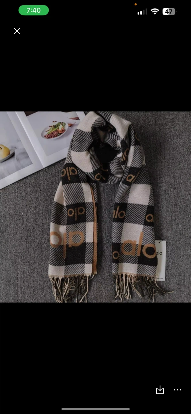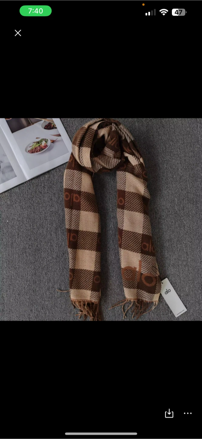 Here's a cozy ALO scarf to keep you warm! It features a stylish design and is made with soft materials. Perfect for adding a touch of flair to any outfit